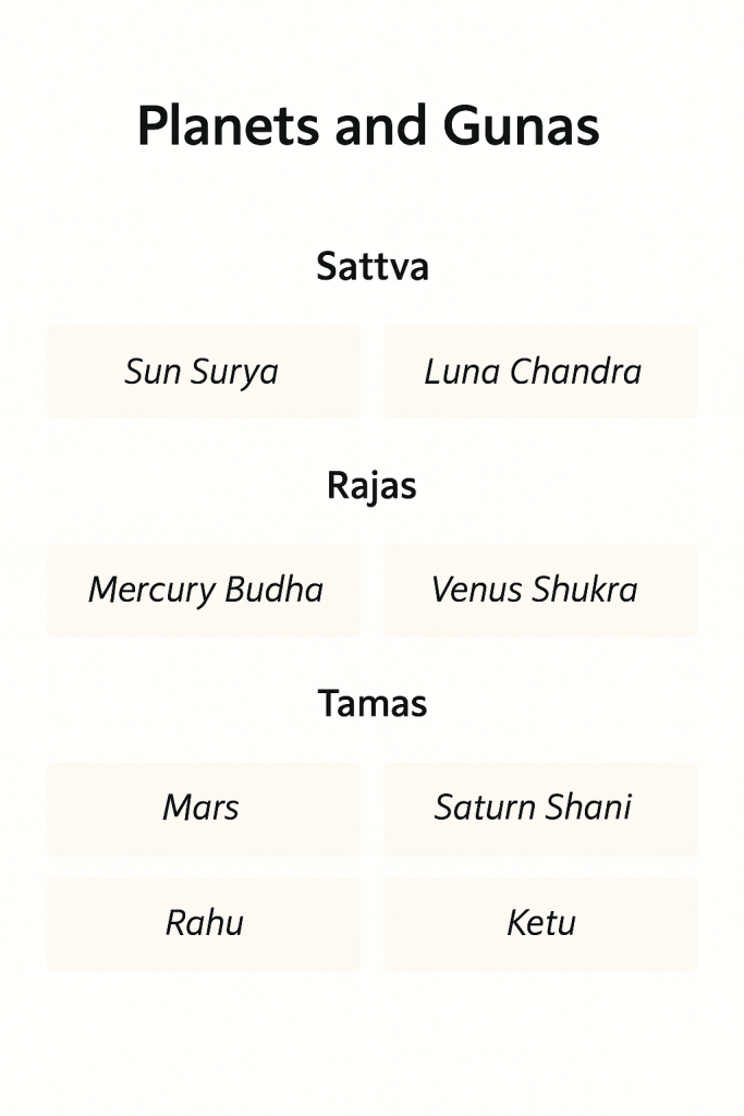 Each planet embodies a dominant guna, which shapes its influence on the mind and actions.